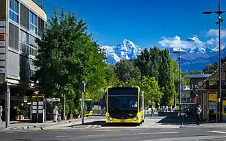 STI was formed in December 1911, originally as the Elektrische Bahn Steffisburg-Thun-Interlaken (English: Steffisburg–Thun–Interlaken Electric Railway),[3] and began carrying passengers on 10 October 1913, with the opening of a tram line between Steffisburg and Oberhofen (via Thun), which was later extended to Beatenbucht and finally to Interlaken. Plans for road rebuilding led to the closure of the Beatenbucht–Interlaken section of tramway in 1939, but trams continued to provide the Thun–Beatenbucht service, STI's main line, until 1952.[3] The Thun–Steffisburg tram line closed in 1958, and since then the STI network has been covered exclusively by buses. Trolleybuses, powered by electricity drawn from overhead wires, were used on the main line, Thun–Beatenbucht, connecting at Beatenbucht with the Thunersee–Beatenberg funicular and with a motorbus route covering the section to Interlaken.[3] In 1982, the trolleybuses were replaced with conventional, diesel-powered buses. STI introduced its first night service in 1993, between Thun and Bern called the Moonliner. Further extensions made to the network in 1999 and 2001 took STI buses into areas such as Gwatt, which had seen railway station closures. In 2022, STI moved headquarters to the Cremo building in Schwäbis.[4]