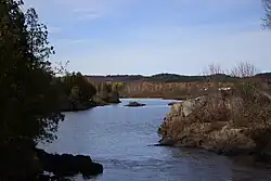 The Wabagishik Dam and Generating Station is situated on the river at Lorne Falls. Water retained at the dam's headpond results in a widened section of the river known as Ella Lake. The dam and power station opened in 1909, originally to power mining projects in the area.[12] The dam is owned by Vale Canada (Vale) a subsidiary of Vale S.A. headquartered in Toronto, Ontario, Canada.[13] The corporation has been criticized for environmental and indigenous concerns in the past, however, has been cooperating with locals and organizations to increase community relations in recent years.[14]