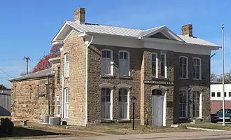 Vernon County Jail, Sheriff's House and Office, also known as the Bushwhacker Museum, is a historic jail and sheriff's residence located at Nevada, Vernon County, Missouri. The stone building was built in 1871 and consists of: a two-story, rectangular-plan, Federal-style residence; a two-story, four-room office; and a one-story, rectangular jail. The building ceased use as a jail in 1960 and houses a local history museum.[2]: 2