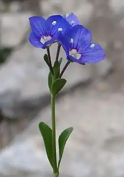 Veronica fruticans, the rock speedwell (a name it shares with other members of its genus) or woodystem speedwell (a common name that is hardly in common use), is a species of flowering plant in the family Plantaginaceae. It is native to nearly all countries in Europe, including the Faroe Islands and Iceland, and Greenland (which is floristically part of North America). It grows either in mountains in the south, or at lower elevations in colder areas in the north of its range. It is the official flower of Bardu Municipality in Troms county, Norway. It has been occasionally cultivated in rock and alpine gardens as a ground cover.[2]