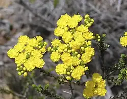 Verticordia sect. Sigalantha is one of seven sections in the subgenus Chrysoma. It includes two species of plants in the genus Verticordia. Plants in this section are rigid shrubs with a single main stem and are up to 1.0 m (3 ft) tall. They have golden-yellow flowers with prominent shining petals. The flowers are arranged in corymb-like groups and become pale or grey as they age. The bracteoles fall off the flower as it opens.[1] When Alex George reviewed the genus in 1991, he described the section and gave it the name Sigalantha.[2][3] The name Sigalantha is derived from the Ancient Greek words sigaloeis meaning "shiny"[4]: 481 and anthos meaning "flower"[4]: 338 referring to the shiny petals of these species.