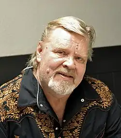 As a singer, Vesa-Matti Loiri is known for interpreting Finnish schlager music and songs set to the poems of Eino Leino.[34] His repertoire also includes humorous songs, folk-style interpretations of Finnish rock classics, and Christmas carols. Loiri's first single, released in 1968, was the humorous "Saiskos pluvan?," followed by around 40 singles, the last being "Eilen kun mä tiennyt en" (2016), a duet with Paula Koivuniemi.[95][96] In the 2000s, Loiri slowed his work pace due to health issues, and music took precedence over films in his career.[40]