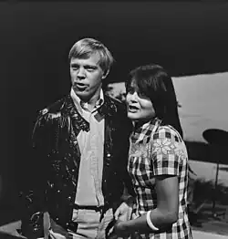In the late 1950s, Vesa-Matti was part of the band Rock Brothers Loiri, which included his brother Veli-Pekka, Mikko Kuoppamäki, and Timo Juslin. Occasionally, he performed as Rock-Olga, a female rock persona.[24] In early 1962, the band performed a youth musical titled Huipulla tuulee (The Wind Blows at the Top), which caught the attention of Paavo Hukkinen, an actor and organizer for Suomen Filmiteollisuus (Finnish Film Industry). Hukkinen inquired if Vesa-Matti would be interested in a film role.[25] This led to his casting in the drama film The Boys.