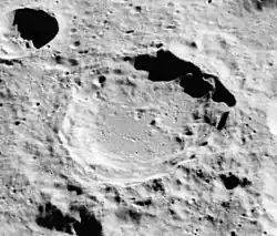 Vesalius is a lunar impact crater that lies on the far side of the Moon, less than 100 kilometers south of the lunar equator. It was named after Flemish anatomist and physician Andreas Vesalius.[1] Just to the northwest is the slightly smaller crater Buisson. Farther to the west-southwest lies the prominent crater Einthoven.