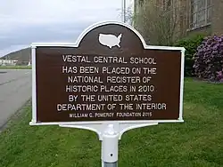 - ^ Kathleen LaFrank (October 2009). "National Register of Historic Places Registration: Vestal Central School". New York State Office of Parks, Recreation and Historic Preservation. Retrieved June 15, 2010. See also: "Accompanying 11 photos".