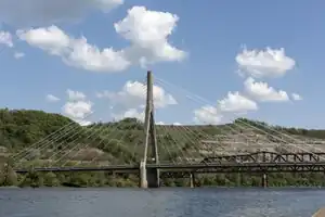 Veterans Memorial Bridge, also known as the New Steubenville Bridge, is a cable-stayed bridge which carries U.S. Route 22 across the Ohio River between Steubenville, Ohio and Weirton, West Virginia. The bridge succeeded the Fort Steuben Bridge, which was built in 1928, though was still operational until 2009.