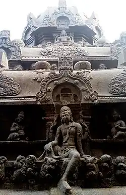 Historians have equated the temple with similar temples across India based on the monolithic classification and being carved in-situ out of a pre-existing rock. Historian K. V. Soundara Rajan believes that the temple is similar in architecture to that of Virupaksha Temple at Pattadakal in Karnataka by Vikramaditya II during 734–44 CE, Kanchi Kailasanathar Temple built by Narasimhavarman II during 685–705 CE and Kailasa temple, Ellora by Krishna I during 756–77 CE.[7] Some historians suggest that the similarities in the architecture are indicative of the political relations between the Pallavas, Rashtrakutas and Chalukyas. This view has been disputed by other historians.[8]