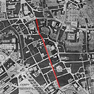 The street was actually affected by excavations between March 2018 and December 2020:[4] the initial stretch, about 50 metres (160 ft) long, was dismantled to reconnect the two areas of the Trajan's Forum that the archaeological investigations of 1998–2000 had isolated.