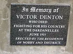 Plaque, Victor Denton War Memorial, Nobby cemetery, 2007