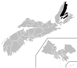 It was created in 1867 as Victoria, composing all of Victoria County. In 1993, the district gained the area north of the southern border of the Cape Breton Highlands National Park.[1] In 2003, Victoria was renamed Victoria-The Lakes. It lost the top of Inverness County to Inverness and gained some of the rural areas of Cape Breton The Lakes.