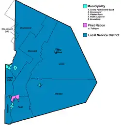 | Grand Falls/Grand-Sault | Town | 18.09 | 5,326 | Grand Falls |