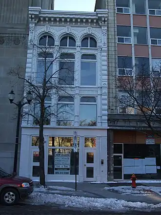 Victoria Hall is a former 3+1⁄2-storey commercial building in Hamilton, Ontario, Canada. Overlooking Gore Park, it is located in downtown Hamilton's central commercial district. For many years, the building (alongside the MacKay Building) was jointly known as the "Foster Building" due to its most recent use as a high-end clothing store. Some people still refer to Victoria Hall by this nickname today. It is a superior and rare example of a commercial building with a decorative architectonic sheet metal facade, which is completely hand-made. It was designated a National Historic Site in 1995.[1][2]