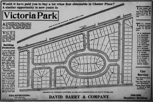 - ^ a b "Victoria Park to Be Exclusive," Los Angeles Times, October 23, 1907, page 29