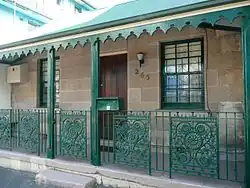 Roughly opposite Embarkation Park, there is a terrace of homes designed in the Federation Filigree style, using woodwork instead of the more usual wrought iron.[5] They are an unusual sight in Sydney, where terraced homes are almost invariably designed in Victorian styles.