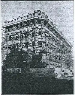 Built just before the South African War, Victory House is the epitome of a Late Victorian commercial structure. It was the most prestigious building in Johannesburg and was the first to have a lift which had crowds gaping for weeks. The lift was a technological marvel, complete with a safety apparatus; it also boasted a polished oak cage and an upholstered seat. The lift was supplied by R Waygood of England. An early letter to the lift firm references the employment of a caretaker and the purchase of a bag of coal to operate the boiler which worked the hydraulic lift. The total cost of the original lift, boiler and engine was 1020 pounds. The staircase was made of cast iron, also made in England it was the first fireproof staircase in Johannesburg.[3][4]