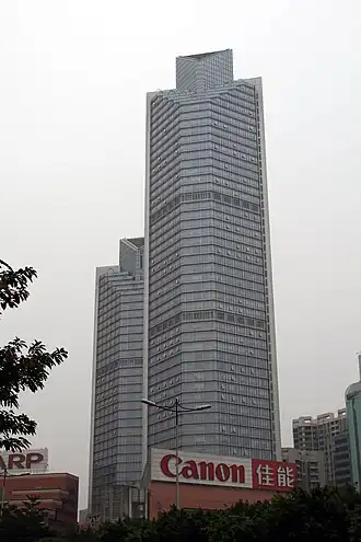 Victory Plaza is a twin tower skyscraper complex in the Tianhe District of Guangzhou, Guangdong, China. Tower A is 222 m (728 ft) with 52 storeys, while Tower B is 150.58 m (494.0 ft) with 36 floors. Construction of Victory Plaza was completed in 2007.