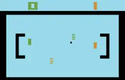 Video Olympics is a sports video game programmed by Joe Decuir for the Atari 2600. It is one of the nine 2600 launch titles Atari, Inc. published when the 2600 system was released in September 1977. The cartridge is a collection of games from Atari's popular arcade Pong series. A similar collection in arcade machine form called Tournament Table was published by Atari in 1978.[3]