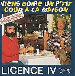 "Viens boire un p'tit coup à la maison" (Come home for a little drink) is a 1987 song recorded by the French band Licence IV. Released as a single in March 1987, the song achieved a huge success in France, becoming one of the best-selling singles of the 1980s in France. The band did not release another song, nor any album.