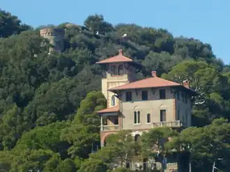 The villa is located in a panoramic position overlooking the sea on the Punta Cajega promontory and it has a large garden surrounded by the Portofino Regional Natural Park, established in 1935.[1][2]