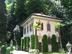 Villa Fontanelle is a villa (sometimes called a palazzo) near Moltrasio on Lake Como in Lombardy, Italy, about 50 kilometres (31 mi) from Milan. The four-storey yellow-painted building was built in the first half of the nineteenth century by the eccentric Lord Charles Currie, a visiting Englishman who fell in love with Lake Como. Failing to find a villa for sale, he decided to create his own, right on the water's edge. It was subsequently owned by Antonio Besana, a friend of the composer Giuseppe Verdi.[1]