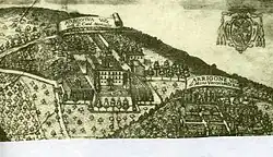 According to a memorial stone within the building, on which is inscribed a "brief" by Pope Gregory XIII, Villa Grazioli was completed in 1580 by Cardinal Antonio Carafa to designs by architect Domenico Fontana. After Cardinal Carafa's death in 1582, the Villa became owned by Cardinal Ottavio Acquaviva of Aragon and his brother. After Cardinal Acquaviva's death in 1612, the Villa and its furnishings were purchased by Scipione Borghese, who sold it in 1613 to Cardinal Taverna. One year later, Prince Michele Peretti purchased the Villa, who lived in it with his brother Cardinal Alessandro Damasconi Peretti Montalto, whose name appears in the engravings by Matteo Greuter of Frascati's landscape. The Villa then passed by inheritance to the Savelli family and in 1683 passed to Olivo or Livio Odescalchi, Duke of Bracciano and Ceri (at which time it was known as Villa Bracciano). In 1713 Baldassare Erba inherited the title and the property; between 1723 and 1743, or possibly in 1776, he had the building thoroughly restructured in both form and size. Although it has been claimed that Alphonse Donatien Francois, the Marquis de Sade, was witness to this renewal, this could not have happened between 1723 and 1743, as de Sade was born in 1740; the date of 1766 does, however, align with de Sade's time in Italy.