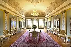 The Great Room of the Villa was named after Alberto Sordi for his starring role in the movie Il Marchese del Grillo, which was filmed at the villa. Currently, this salon is used only for exclusive events.