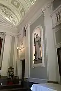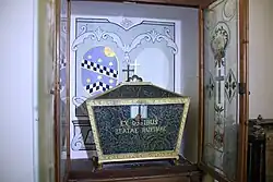The Chapel was built in 1771 and is attached to the right wing of the villa with an entrance from the north side. The marchese used to enjoy Papal Mass from a private balcony that connected the chapel with his suite on the noble floor. Because of his close ties to the Vatican and the Pope, the chapel contains a remarkable collection of Christian relics, such as those of Saint Potenziana, Saint Ruffina, and Saint Vincenzo Martire. The final resting place of St. August was also there. He was found hidden behind the wall, preserved from the German invasion.[10]