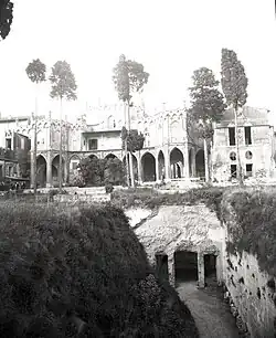 Mills is believed to have added Gothic elements to the villa using the services of a "fashionable British architect" to create "pinnacles, battlements, cornices, and cloisters" and also two Chinese pagodas, painted yellow, over augustane spas [9] Given the lack of evidence of Mills' "changes", it is possible that Smith and not Mills was responsible.[10] Although evidence suggests the villa was built by Mills, as the thistles in the decoration indicate, a reference to its Scottish origin,[11] the building reveals much more of Smith's mixed style, with Gothic and Italian elements linked to other Indians in a central rotunda flanked by two octagonal towers with a loggia with arches at the bottom. With the ruins of ancient civilizations under the building and a grandiose panorama above, the design of the villa is reminiscent of a bungalow in Delhi. In confirmation of this thesis, the guests of the villa during the period in which Charles Mills was alive did not mention the "eccentric" aspect of the complex, which surely would have done if the modifications had already been present.[12] In these accounts, the garden appears to have been the most attractive point of the villa rather than the architecture of the palace, making it all the more likely that the new additions were the work of Smith and not Mills.[7][13]