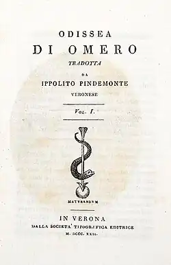 - ^ Pindemonte, Ippolito (1829). L'Odissea di Omero Tradotta da Ippolito Pindemonte con Aggiunta della Batracomiomachia e di Alcuni Inni Tradotti da Altri Autori (in Italian). Vol. II. Milan: Nicolò Bettoni. OCLC 1040674154.