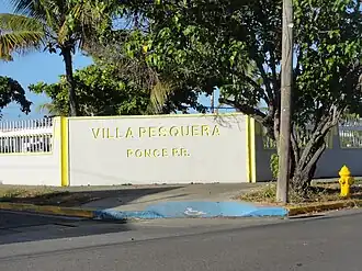 Formerly an ad hoc group of fishermen, Villa Pesquera was re-organized and inaugurated in 1992 under the administration of Ponce Mayor Rafael Cordero Santiago.[2] The village is located on the southern Puerto Rico's Caribbean Sea shores, on Avenida Padre Noel in barrio Playa in Ponce, Puerto Rico. The village includes a restaurant by the same name - Restaurante Villa Pesquera.[3]
