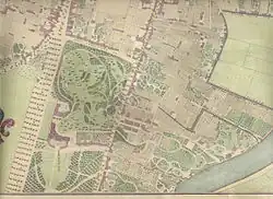 It was built by Henry Hope of the famous family banking company Hope & Co. of Amsterdam, from 1785 to 1789 as a summer home to replace the already quite impressive structure that he purchased there in 1769. From 1769 onwards, Henry Hope purchased more and more adjoining land in order to fulfill the plans he had for a great palace and picture gallery. During the five-year period that the construction took place, it was the talk of the town. No one had seen such a large summer home. To give an impression of the size compared to his contemporaries, see the map from 1827 showing the size of Welgelegen and its gardens (that go much further south than the map shows) compared to its neighboring summer homes of Amsterdam mayors and bankers.