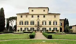 The Villa di Geggiano is a neoclassical-style rural palace located on Via di Geggiano 1, in the neighborhood of Pianella of the commune of Castelnuovo Berardenga, in province of Siena, region of Tuscany, Italy.