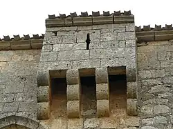 St Eugenia's Church, Villegas is mainly 16th century, but retains some earlier work.[3] It has defensive features including a stilt tower and a machicolation above the south door.[4]