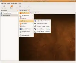 Vinagre is a discontinued[2] VNC, SSH, RDP and SPICE client for the GNOME desktop environment, superseded by GNOME Connections.[5] Vinagre was included in GNOME 2.22. It has several features, like the ability to connect to multiple servers simultaneously and to switch between them using tabs, VNC servers browsing and bookmarking. In version 2.29, Vinagre added controlling frame compression, better scaling and color depth. Version 2.30 added improved SSH tunneling and better support for copy-paste features between client and server.