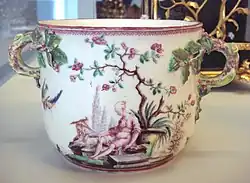 After 1752, through a Royal Edict, Vincennes was handed a monopoly of polychrome decors, which reduced the scope of other manufactories to some degree.[10]
