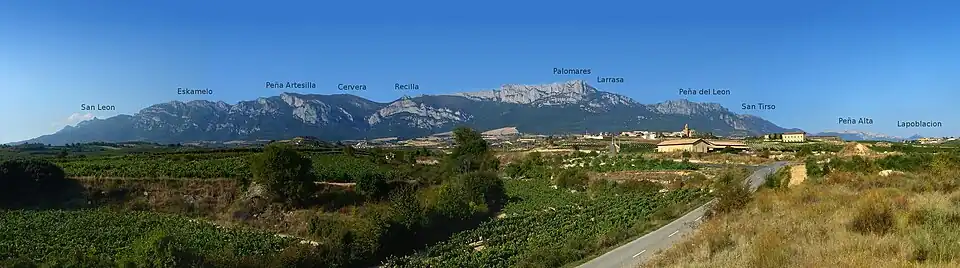 Rioja Alavesa (Arabako Errioxa in Basque) comprises approximately 12,000 hectares of vineyards,[25] with an average annual wine production of around 400,000 hectoliters. Wine production in the region is regulated by the Consejo Regulador de la Denominación de Origen Calificada Rioja, and Rioja Alavesa wines have gained recognition both domestically and internationally.[26]
