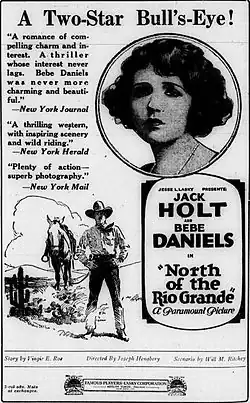 - North of the Rio Grande (1922, now lost), based on her novel Val of Paradise[20]