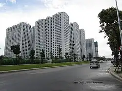 Vinhomes Times City, commonly referred to as Times City, is an urban complex in Hanoi invested by Vingroup, with a total ground area of 360,367 to 360,500 square meters, total floor area of about 2,181,298 m2 to 2,205,595 m² commenced construction in 2011, with total estimated investment capital of 23,883 billion to 30,308 billion đồng. Times City includes many functional subdivisions: apartments, commercial centers, hospitals, schools, parks, lakes, swimming pools, aquariums, squares with featured water music.[1]