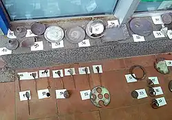 48 artefacts of silver tableware were found, with a total weight of around 36 kilograms (79 lb).[4] The items were found in what appears to have been a storage pit, at a depth of about 70 centimetres (28 in) below the modern ground level.[1] They had been carefully placed within a large pottery bowl, which had been placed in the ground and covered over with dirt, accounting for their mostly very good state of preservation. The find came as a complete surprise to the archaeologists, who were used to finding small non-precious objects but had not expected to make a major discovery. According to Vrkić, "It was hard to believe that it is silver, because they always find some small things, and when we find something half a meter long ... it was hard to believe that it was silver and it was ancient."[5]