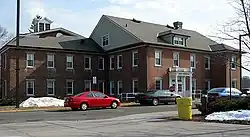 The Alms House (or County Poor House) was established in 1837, at Viola (then known as Mechanicsville) in the town of Ramapo, for the poor and destitute (debtors). It was located 7 miles (11 km) west of New City. Rockland County had purchased the 47-acre (190,000 m2) parsonage farm of the Kakiat (West New Hempstead) Dutch Reformed Church (also known as the Brick Church) for use as an alms house. There the county originally built a wooden frame house to serve the poor. The inmates contributed to their upkeep by tending the farm. In 1883, a brick building was constructed. The facility included a school for the children. In 1957, the Alms House was moved to Building "C" at the Pomona Health Center in Summit Park, and the property would become the site of Rockland Community College. The Alms House was renamed the Rockland County Infirmary and Home. In 1977, it was removed to Building "A". It has been renamed the Summit Park Nursing Care Center. The old brick Alms House building remains as an administration building (Daniel T. Brucker Hall), used by Rockland Community College. The farm lands are the campus. The Poor Cemetery (Potter's Field) remains on the RCC campus, along with the original Gary Onderdonk Veterans' Cemetery.