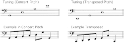 3. ^ The existence of two basses, a smaller one and a larger one, was also a feature of the viol family, which had two types of violone tuned one fourth apart