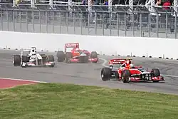 The Virgin MVR-02 is a Formula One racing car designed by Wirth Research for Marussia Virgin Racing, and used by them during the 2011 Formula One season. Like its predecessor, the Virgin VR-01, the MVR-02 was designed entirely with computational fluid dynamics, with Nick Wirth's design studio doubling their CFD capacity ahead of the 2011 season. The addition of the "M" in the car's chassis designation reflected the team's new owner, Russian sports car manufacturer Marussia Motors.[2] The car was unveiled in London on 7 February 2011, and was driven during the racing season by returning driver Timo Glock and debutant Jérôme d'Ambrosio.