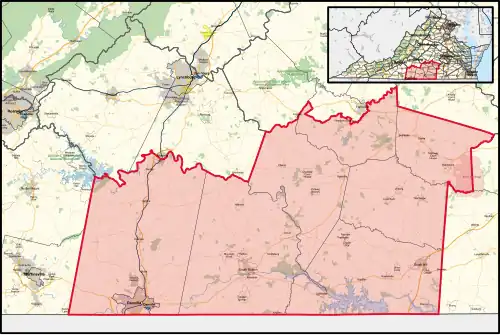 The district overlaps with Virginia's 1st and 4th congressional districts, and with the 55th, 68th, 69th, 70th, 71st, 72nd, 73rd, and 74th districts of the Virginia House of Delegates.[4]