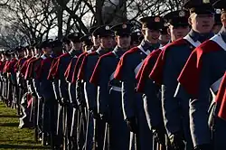 Under the militia bill (the Virginia Code of 1860) officers of the institute were recognized as part of the military establishment of the state, and the governor had authority to issue commissions to them in accordance with institute regulations.[15] Current law makes provision for officers of the Virginia Militia to be subject to orders of the governor.[15] The cadets are a military corps (the Corps of Cadets) under the command of the superintendent and under the administration of the Commandant of Cadets, and constitute the guard of the institute.[15][19]
