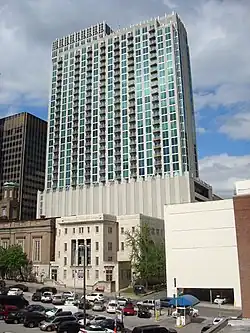 The Viridian Tower is a 378-foot (115 m), 31 story skyscraper in Nashville, Tennessee. The building's features include an H.G. Hill grocery store on the bottom floor, rooftop pool, fitness center and clubroom, and secure key card access. In 2007, the building received Project of the Year Award by Urban Land Institute. It is currently the twenty-second tallest building in Nashville.