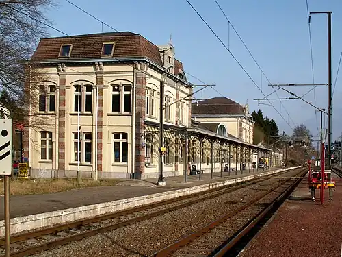 Virton railway station (French: Gare de Virton; Dutch: Station Virton)[a] is a railway station in Virton, Luxembourg, Belgium. It is located on railway line 165, from Athus to Libramont. It was commissioned in 1879 by the Society of Railway Virton, and was formerly called Virton-Saint-Mard railway station (French: Gare de Virton-Saint-Mard; Dutch: Station Virton-Saint-Mard)[b]. It is operated by the National Railway Company of Belgium (SNCB/NMBS) and served by the following types of trains: Omnibus (L) and Rush Hour trains (P).