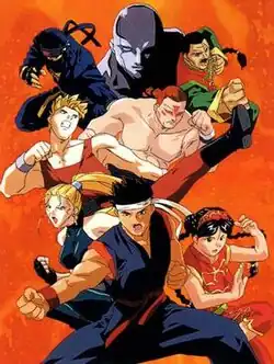 Virtua Fighter (Japanese: バーチャファイター, Hepburn: Bācha Faitā) known specifically as Virtua Fighter Animation is a Japanese anime television series based on the Virtua Fighter series of video games made by Sega. Produced by TV Tokyo, Yomiko Advertising and TMS-Kyokuichi, it was directed by Hideki Tonokatsu, with Tsutomu Kamishiro handling series scripts, Ryō Tanaka designing the characters, Satoshi Katō serving as sound director and Kaoru Ōhori composing the music. Targeted towards children aged 6 to 15 years old,[1] the series originally aired on TV Tokyo from October 2, 1995 to June 27, 1996. The episodes take place before the first game in the series, and accordingly portray the characters as slightly younger than they are in the games.[2]