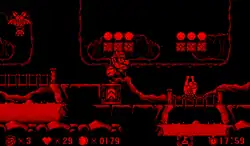 Wario has the ability to leap between the background and foreground using jump pads.[1][2][4] In most levels, the player needs to navigate between the two planes to explore and search for items, or avoid enemies and obstacles that move between the planes.[3][6][7] If Wario takes damage, he will shrink, losing his power until he picks up a clove of garlic or a hat.[1][4][6] If Wario is hit while small, he loses a life and all the coins he had collected in that level.[1][2][5] Every three floors, Wario must fight bosses that make use of the Virtual Boy's stereoscopic 3D effect.[1][2][3] Between floors there are mini-games where Wario can gamble the loot he has collected so far.[1][2][5] Each level in the game contains one of ten artifacts hidden inside secret chambers and the ending depends on whether Wario found them all and the coins he collected.[1][3][7]