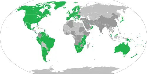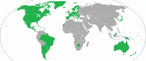 A visa-free stay is granted to nationals of all European Union countries, Andorra, Antigua and Barbuda, Argentina, Australia, Bahamas, Bangladesh, Barbados, Belize, Bolivia, Botswana, Brazil, Brunei, Canada, Chile, Costa Rica, Dominica, East Timor, Ecuador, El Salvador, Eswatini, Fiji, Gambia, Ghana, Grenada, Guatemala, Honduras, Hong Kong, Iceland, India, Japan, Kenya, Kiribati, Lesotho, Liechtenstein, Macao,[c] Malawi, Malaysia, Maldives, Marshall Islands, Mauritius, Mexico, Micronesia, Monaco, Namibia, Nauru, New Zealand, Nicaragua, Norway, Palau, Panama, Papua New Guinea, Paraguay, Saint Kitts and Nevis, Saint Lucia, Saint Vincent and the Grenadines, Samoa, San Marino, Seychelles, Sierra Leone, Singapore, Solomon Islands, South Africa, South Korea, Sri Lanka, Switzerland, Taiwan, Tanzania, Tonga, Trinidad and Tobago, Tunisia, Tuvalu, Uganda, United Kingdom, United States, Uruguay, Vanuatu, Vatican City, Venezuela, Zambia and Zimbabwe.[c][24][5]