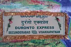 - ^ "Duronto Express on tracks soon". CityofVizag.com. Archived from the original on 22 March 2012. Retrieved 31 March 2012.